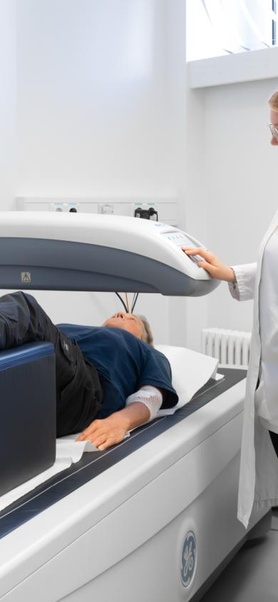 Mit der DEXA-Messung kann die Dichte ihrer Knochen bestimmt werden und eine evtl. vorhandene Osteopenie oder Osteoporose diagnostiziert und kontrolliert werden. Dazu werden Messungen mit Röntgenstrahlung an Referenzstellen Ihres Körpers durchgeführt. Für die Knochendichtemessung benötigen wir folgende Unterlagen: Untersuchungsanforderung, Vorbefunde, extern durchgeführte Diagnostik und Laborwerte, Medikamentenplan, Versicherungskarte.